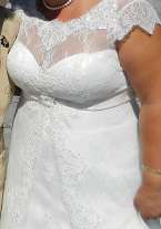 КРАСИВОЕ БЕЛОЕ ПЛАТЬЕ ДЛЯ ПЫШНЫХ ФОРМ, ПЛАТЬЕ ЧИСТОЕ ПОСЛЕ ХИМЧИСТКИ. Прелестное открытое пышное платье " Марибель" с корсетом на шнуровке сзади, платье в идеальном состоянии, на груди кружева, на корсете вышивка. Звонить в любое время
